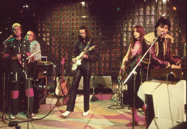Fast-forward a week. “I wanted something that would reflect the music, amplify the feel. And Antony was just genius. It all came together like magic. I can’t remember if he had the clothes or made them, but we had the photographer Karl Stoecker, an impossibly good-looking American who was married to Errol Flynn’s daughter. And the model Kari-Ann Muller, who was like a dream fan, clutching a gold disc. Remember, you couldn’t immediately see what you had, three days later if you were lucky, so we went to Karl’s manager Octavian von Hofmannsthal’s house to see the photos, and it was a dream come true to see these wonderful images we’d created.” The cover, art-directed by Ferry’s college buddy Nick de Ville, was subsequently graced with deco-edged postcards of each band member, like pin-ups, mounted on “a piece of that sticky stuff you put on kitchen tables”. Ferry says he was like Darryl Zanuck, the producer adjudicating over the different elements. As for his own postcard, dressed as a lamé-clad greaser, he says now that he “looked better than reality, like he’d never be seen again”. Which is a hell of a lot more positive than he felt about his singing. “Awful,” he says dismissively. “I hadn’t quite found the keys, I should have taken them down a bit.”